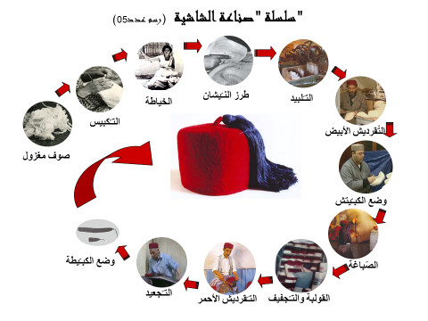 الشكل 1 : تموقع حرفة الشاشية والأنشطة المرتبطة بها