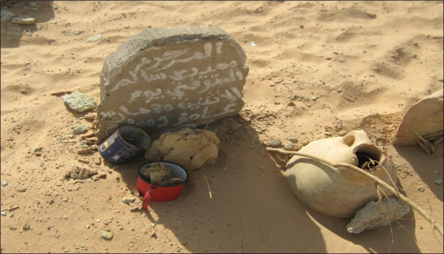 وبالنسبة لعدم الكتابة على القبور وعدم بنائها وتزيينها مرتبط في الثقافة الإسلامية بعدد من الخطابات (الفتاوى) التي كرّست ذلك من أجل وضع قطيعة مع الممارسات الوثنية وما قبل الإسلامية (عبادة الأجداد-عبادة الأصنام). ويعتبر البناء شرط أساسي للكتابة، إذ بدونه تنعدم. ولكن هذا الوضع في الجنوب مرتبط أيضا بطبيعة التوزيع الديموغرافي للسكان الذين كانوا يتوزعون في مجموعات عائلية وقبلية صغيرة داخل "القصور" والذين نظرا لذلك كانت مقابرهم صغيرة وأمكن التعرّف على هويات أصحاب القبور بكل سهولة. وكان يستعان ببعض الوسائل البسيطة من أجل ذلك: سعف النخيل، الأواني المنزلية، طريقة وضع الأحجار على القبر والتي تحدد جنس المتوفى (رجل، امرأة) كما أن طول القبر يعطي فكرة عن عمر المتوفى وما إذا كان طفلا
