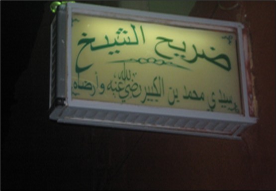 على اللوحة المضيئة، كُتب: "ضريح الشيخ سيدي محمـد بن الكبير، رضي الله عنه وأرضاه". يدل استخدام هذه الصيغة على ما كان يحظى به الشيخ من احترام كبير، وأن صورته في المخيلة الجماعية كانت قريبة من صورة الأولياء. توقف إنتاج الأولياء في الجزائر، كما في المغرب، جزئيًا في نهاية القرن التاسع عشر مع ظهور الاستعمار والتصنيع والثورات العلمية وتعميم التعليم الحديث من قِبل المدرسة. ولكن هذه الحالة تشير إلى أن إنتاج الأولياء يستمر في صمت وتكتم.