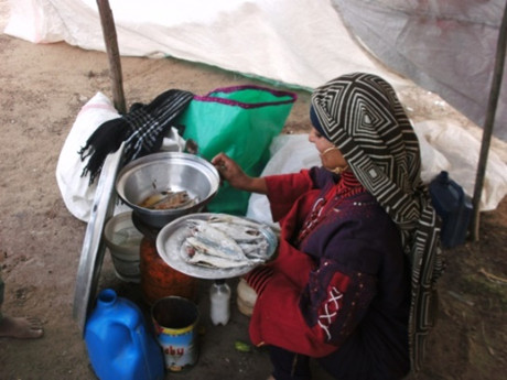 الشكل (2): صورة لامرأة داخل الخيمة تقوم بإعداد الطعام