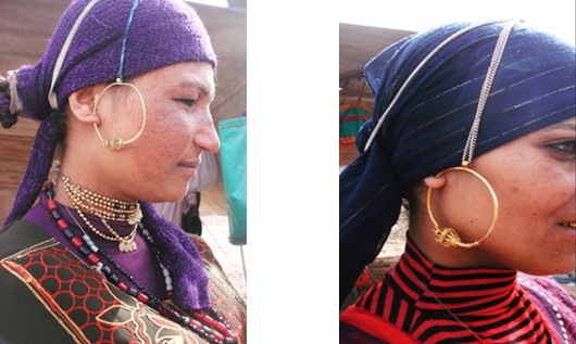 الشكل (13، 14): صورة توضح شكل الأقراط التي ترتديها المرأة البدوية في الشرقية