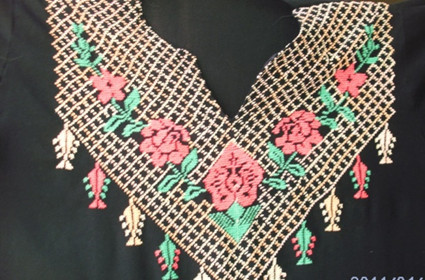 الشكل (20): صورة توضح شكل زخارف الصدر في الزى التقليدي للمرأة البدوية